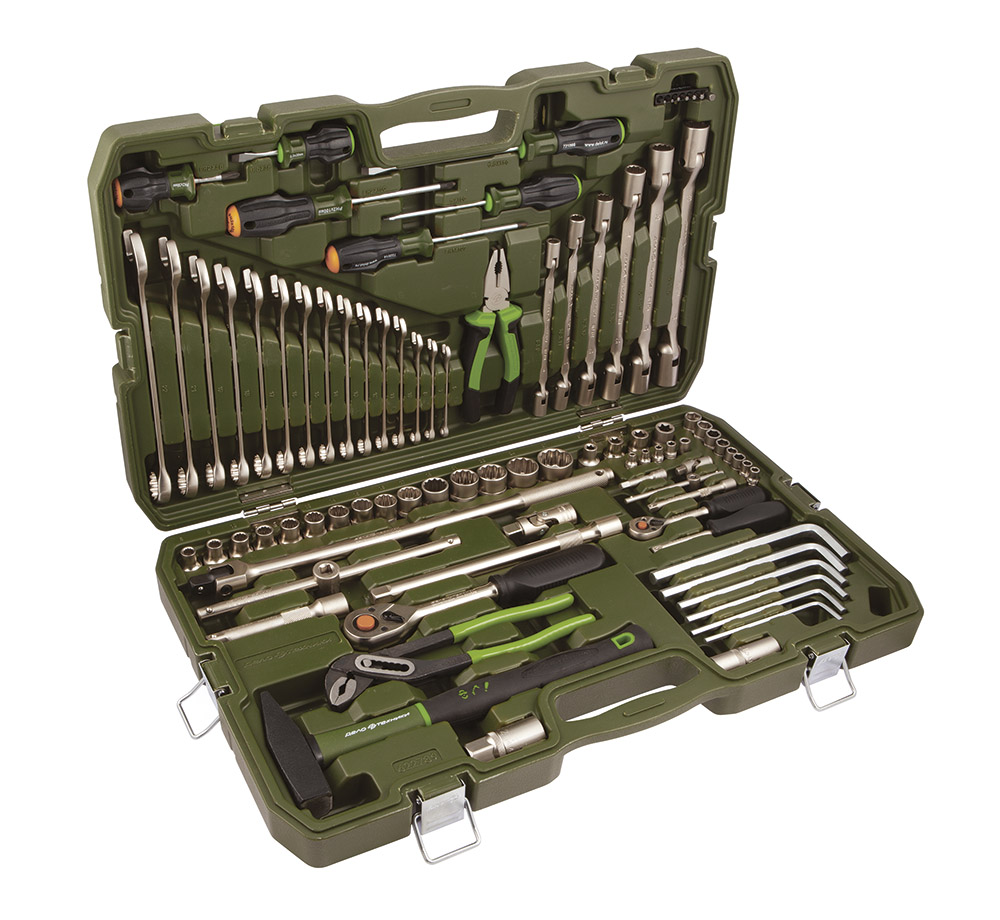 Набор инструментов 89 предметов в чемодане подходит для ремонта автомобиля, мотоцикла и другой техники в гараже, мастерской, поездке или автопутешествии.