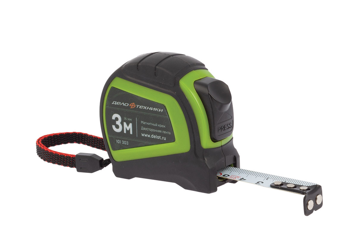 Двусторонняя двуцветная измерительная лента с вертикальной и горизонтальной разметкой, с матовым защитным покрытием.
