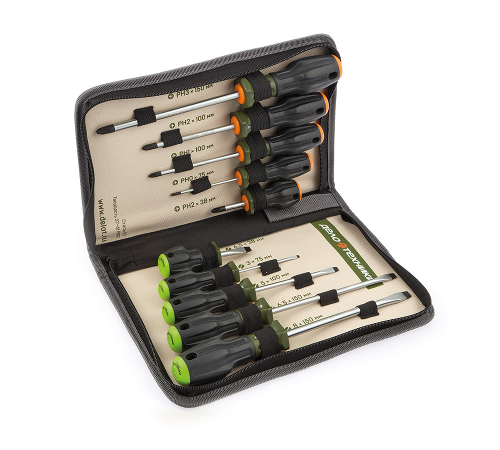 Удобные в эксплуатации отвёртки рассчитаны на выполнение как лёгкого кручения, так и на приложение большего усилия; продуманная форма рукоятки, состоящая из прорезиненного элемента и пластика, устойчивого к влиянию агрессивных веществ, надёжно фиксируется в руке в момент кручения и не позволяет отвёртке скатываться по наклонной поверхности.