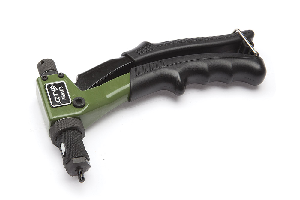 Ручной заклёпочник для резьбовых заклёпок применяется при слесарно-монтажных и строительных работах для быстрого скрепления различных материалов. В работе с резьбовым заклепочником используются резьбовые заклёпки размеров M3, M4, M5, M6.
