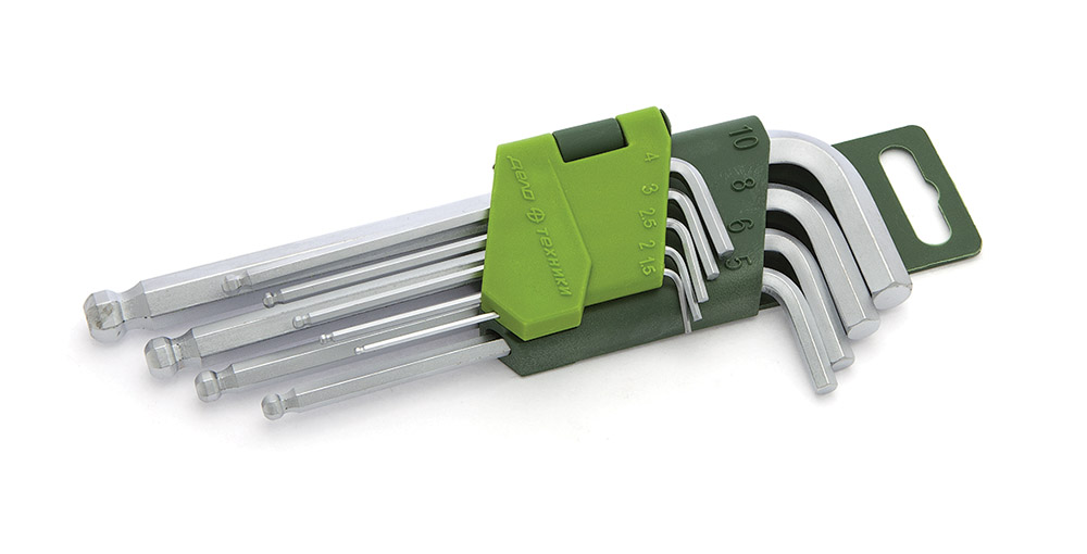 — угловые ключи шестигранные с шаром: 1.5, 2, 2.5, 3, 4, 5, 6, 8, 10 мм;