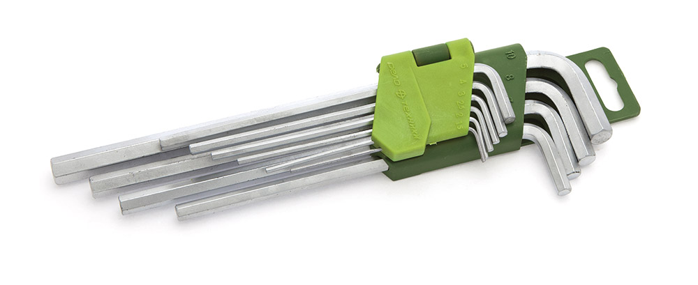 — угловые ключи шестигранные удлинённые: 1.5, 2, 2.5, 3, 4, 5, 6, 7, 8, 10 мм;
