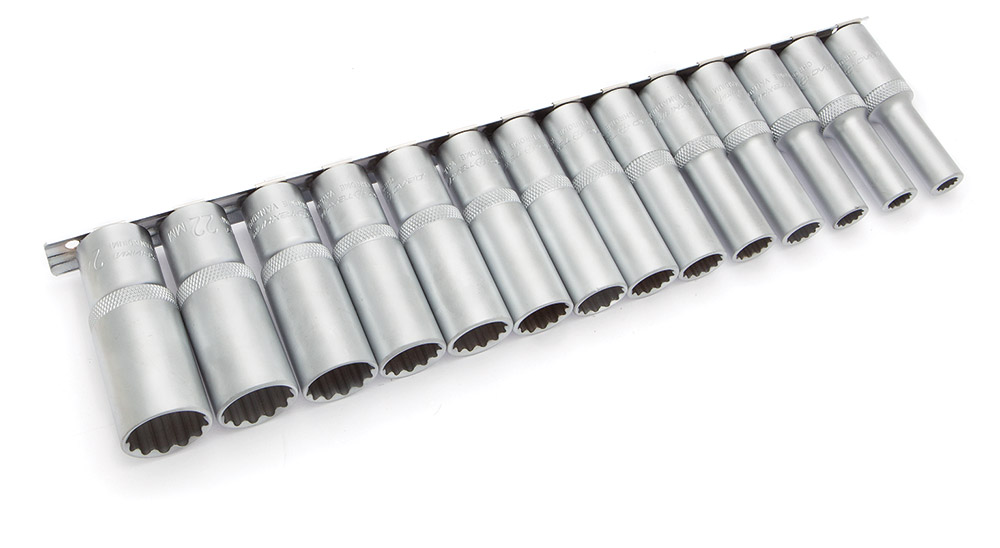 — головки двенадцатигранные удлинённые 1/2": 8, 9, 10, 12, 13, 14, 15, 16, 17, 18, 19, 21, 22, 24 мм;