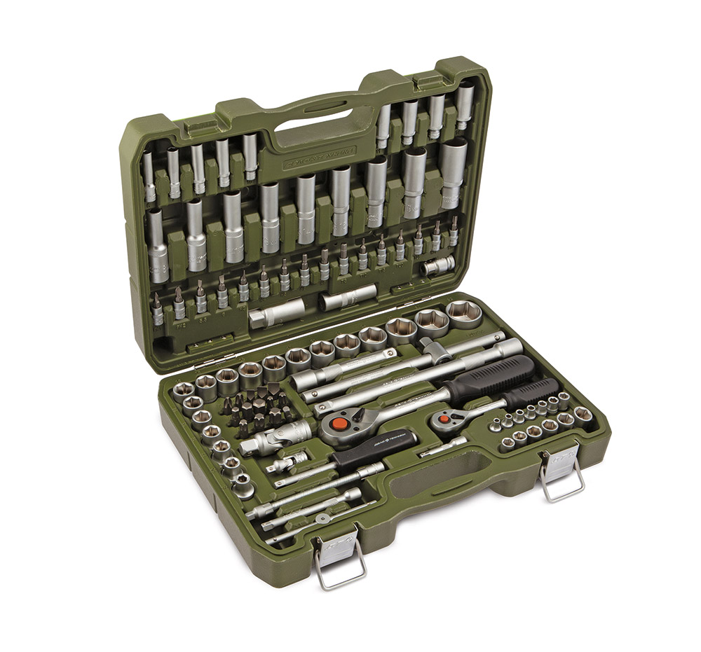 Набор инструментов 94 предмета в удобном чемодане подходит для ремонта автомобиля, мотоцикла и другой техники в гараже, мастерской, поездке или автопутешествии.