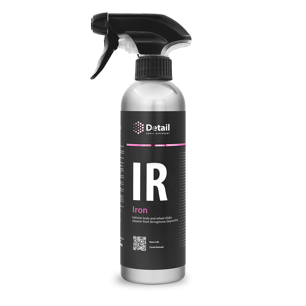 Уникальная pH-сбалансированная формула состава Iron (IR) безопасна для различных поверхностей автомобиля. Iron (IR) эффективно справляется с дорожным налетом на ЛКП, стёклах и зеркалах. Состав разработан специально для очистки колесных дисков. Iron (IR) незаменим для удаления въевшейся тормозной пыли на дисках, которую невозможно полностью очистить обычными средствами. Iron (IR) расщепляет загрязнение за несколько минут, по завершении приобретая малиновый (марганцевый) оттенок.