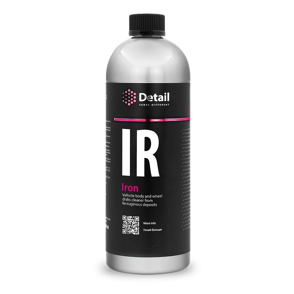 Уникальная pH-сбалансированная формула состава Iron (IR) безопасна для различных поверхностей автомобиля. Iron (IR) эффективно справляется с дорожным налетом на ЛКП, стёклах и зеркалах. Состав разработан специально для очистки колесных дисков. Iron (IR) незаменим для удаления въевшейся тормозной пыли на дисках, которую невозможно полностью очистить обычными средствами. Iron (IR) расщепляет загрязнение за несколько минут, по завершении приобретая малиновый (марганцевый) оттенок.