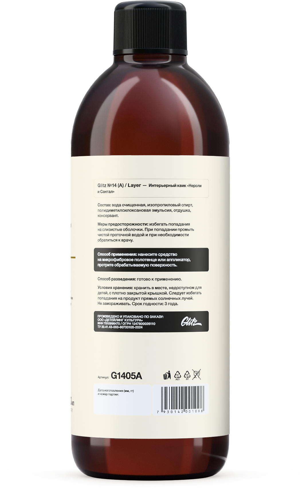 Аромат средства «Нероли и Сантал» создаёт приятную атмосферу в салоне автомобиля. Нероли обладает успокаивающим и расслабляющим эффектом, а сантал добавляет тёплые и древесные нотки. Этот аромат помогает создать ощущение чистоты и уюта. Аромат не простой, а парфюмированный, - фирменный почерк Glitz.