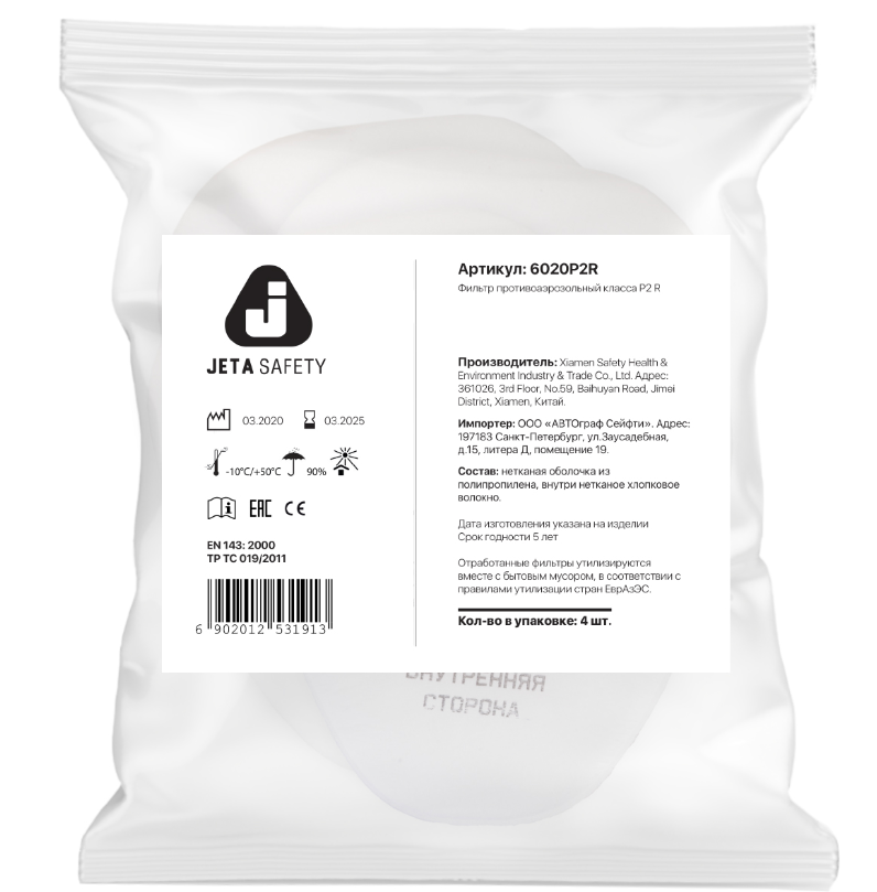 JETA PRO 6020 Предфильтры от пыли и аэрозолей P2 R (4 шт.) купить по доступной цене