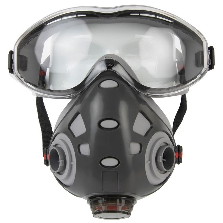 • Компактная и легкая полумаска с встроенными очками. Идеальное решение для защиты зрения и дыхания в одном продукте.