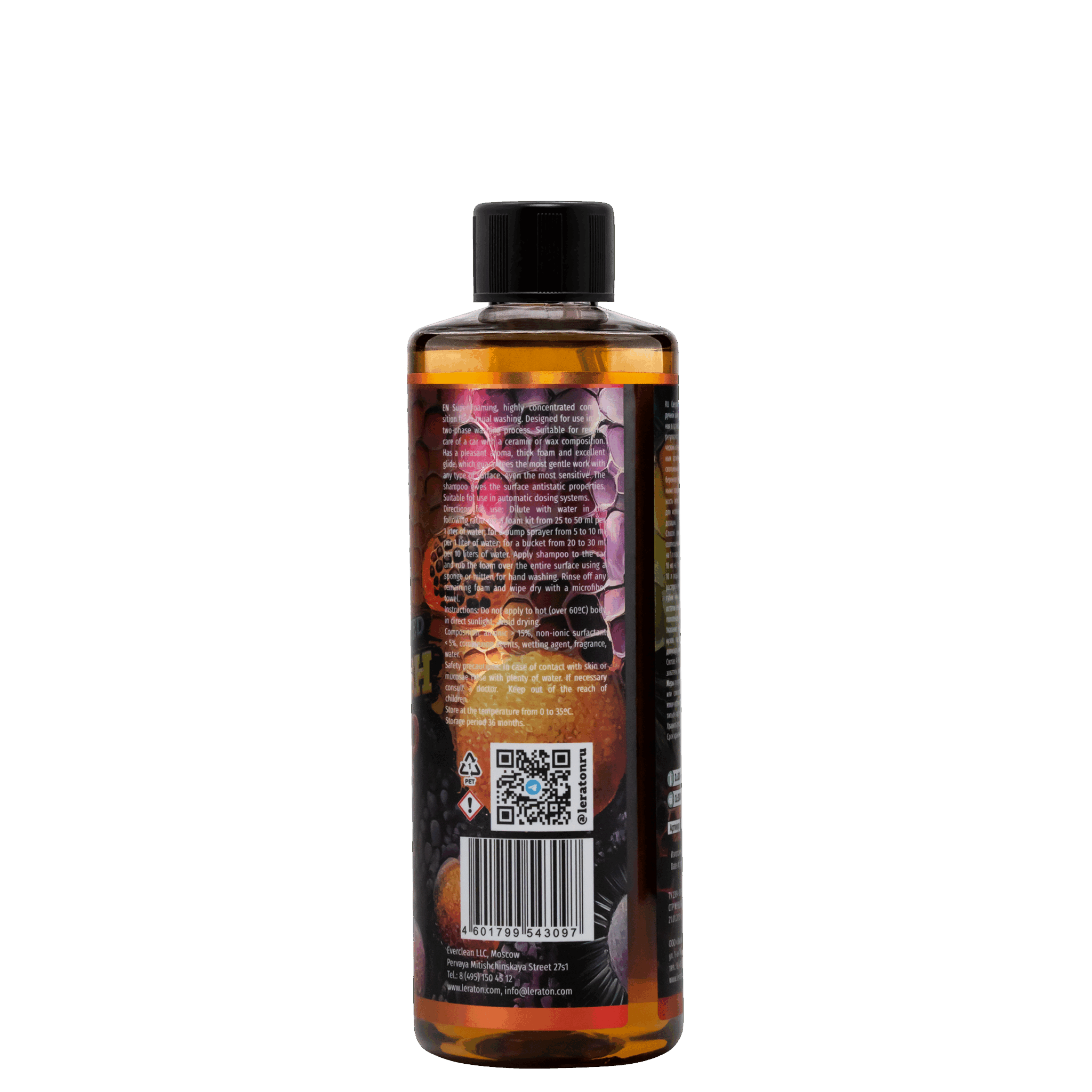Нанести шампунь на автомобиль и растереть пену по всей поверхности при помощи губки или варежки для ручной мойки. Смыть остатки пены и насухо вытереть микрофибровым полотенцем.