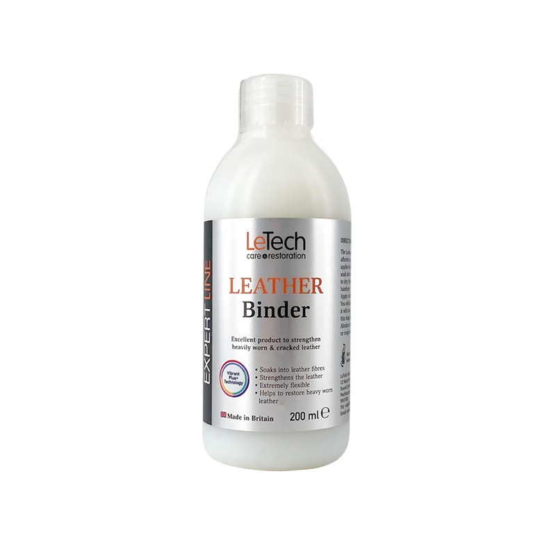 Средство для укрепления изношенной кожи (Leather Binder) представляет собой жидкость, которая может быть использована для укрепления кожи, где внутренняя структура сильно нарушена. Связующее вещество проникает между волокон кожи, скрепляя их вместе, тем самым укрепляя изношенную кожу. Средство значительно повышает прочность кожи, что делает ремонт изделия проще и качественнее. Мы протестировали это средство на куске тонкой кожи, который можно было легко разорвать руками. После обработки этого куска кожи средство для укрепления изношенной кожи (Leather Binder) разорвать его руками стало невозможно.