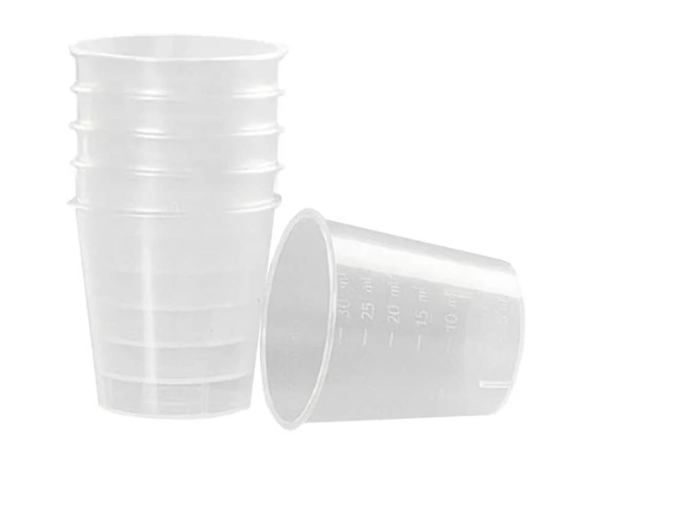 Стаканчики имеют мерную шкалу с шагом в 5 мл, что поможет вам точно расчитать количество краски при окрашивании.