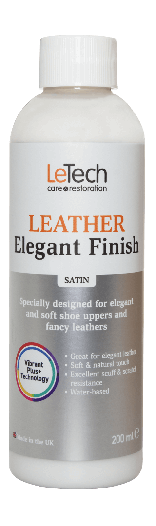 Leather Elegant Finish — это нитро-водная эмульсия, предназначенная для финишной отделки кожи. Этот продукт обладает уникальными свойствами, которые формируют тонкое, прочное и очень мягкое покрытие, идеально подходящее для элегантных кож. Leather Elegant Finish используется в качестве финиша для верхней части обуви с высоким блеском и для изысканных кож.