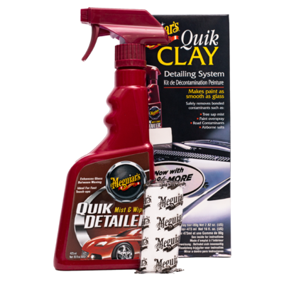 Quik Clay Detailing System сохраняет восковой слой покрытия и придает поверхности такой вид, как будто она только что была покрыта воском. С помощью глины, входящей в состав комплекта, удаляет опасные загрязнения раньше, чем они повредят лакокрасочное покрытие.