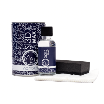 Nanolex Si3D MAX — передовое защитное покрытие Si3D для ЛКП и других внешних элементов кузова автомобиля, включая любые лакокрасочные поверхности, колёсные диски и детали из неокрашенного пластика. Состав формирует на обрабатываемой поверхности толстый защитный слой за счёт толстой сшитой полисилазановой матрицы, которая обеспечивает максимальные защитные свойства — выдающуюся прочность и долговечность, а также придает поверхности невероятный гидрофобный эффект и максимальные легко-очищаемые свойства.