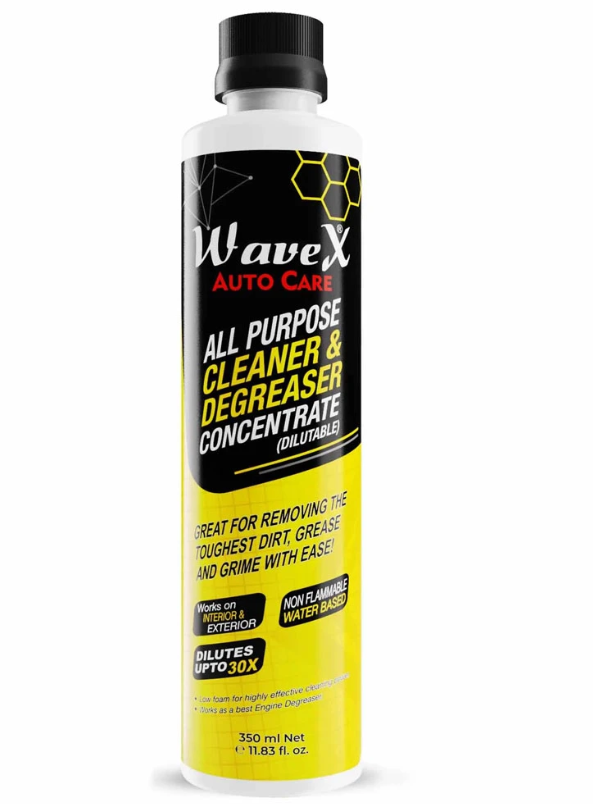 При очистке от загрязнений, таких как масло на двигателях, грязь на шинах, колесах, остатки насекомых и др., необходимо нанести Wavex All Purpose Cleaner & Degreaser на сильно загрязненные участки. Дайте ему действовать в течение 2 минут. При необходимости использовать щетку или губку для очистки сильно загрязненных областей. Тщательно промойте поверхность высоконапорным моющим аппаратом.