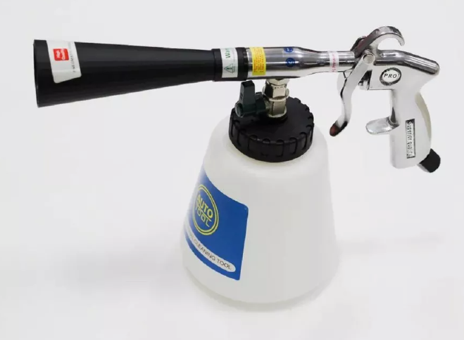 Моющая жидкость распыляется под давлением и с высокой скоростью, что позволяет быстро и эффективно удалять различные загрязнения с поверхности ткани, велюра, винила или пластика.